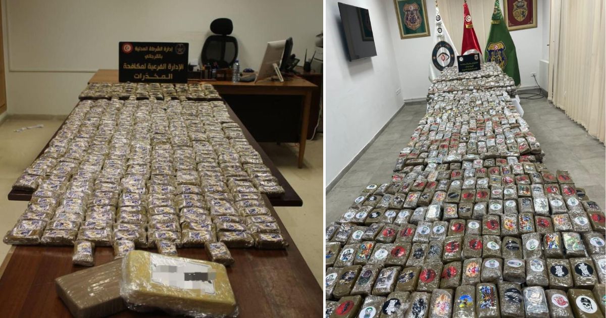 وحسب البلاغ أطاحت الوحدات التابعة للإدارة الفرعيّة لمُكافحة المُخدّرات بإدارة الشرطة العدليّة بوفاق إجرامي دُولي مُختصّ في تهريب وترويج الموادّ المُخدّرة وألقت القبض على خمسة من عناصره كما تم حجز 38 كلغ من مُخدّر « الكوكايين » و475 صفيحة من مُخدّر « القنب الهندي » و25 ألف قرصا مُخدّرا نوع « إكستازي » ومبلغ ماليّا قدرهُ 115 ألف دينار.