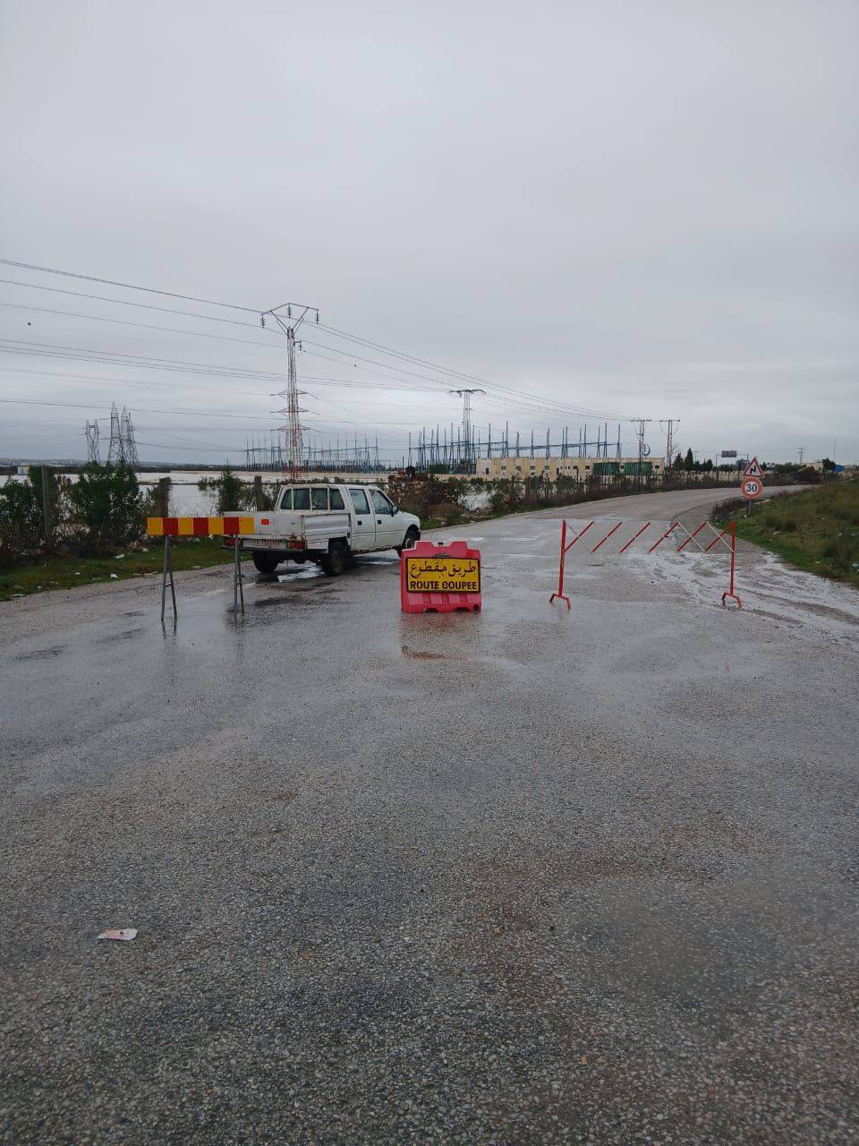 1/سيدي مدين -مجاز الباب :الطريق الوطنية رقم 05 قديم مستوى وادي الحمار مجاز الباب انقطاع حركة المرور بسبب تراكم مياه الأمطار.