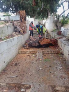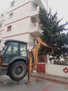 بنزرت: بلدية المكان تقوم بإزالة بقايا الأشجار التي خلفتها الامطار الاخير