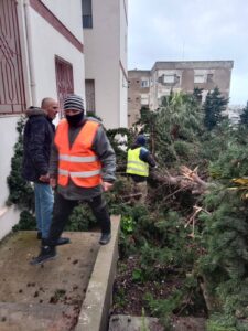 يواصل عمال النظافة والبستنة ببلدية بنزرت لليوم الثاني على التوالي في إزالة بقايا الأشجار سقطت نتيجة لسقوط كميات كبيرة من الامطار على مدينة بنزرت وكذلك الرياح القوية التي رفعتها بحسب ما افاد به السيد مروان بن غربية المسؤول عن المستودع البلدي لاءاعة اوكسيجان واضاف بن غربية ان اعوان النظافة تجندوا منذ الأمس بقد فتح الطروقات وإزالة بقايا الأشجار وإصلاح التنوير العمومي داعيا كل المواطنين بالتقليد بالحيطة وتجنب المجازفة المحفوفة بالمخاطر كما اعرب ان البلدية لن تدخل جهد قصد تقديم الخدامات للمواطنين في هذا الظرف .