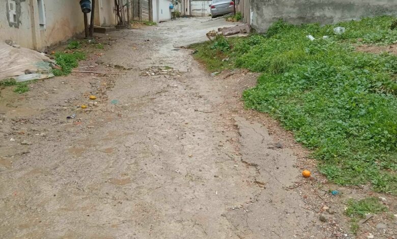تراكم مياه الأمطار في نهج المها بالمصيدة بسبب غياب مخرج لتصريف المياه