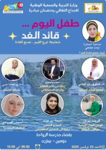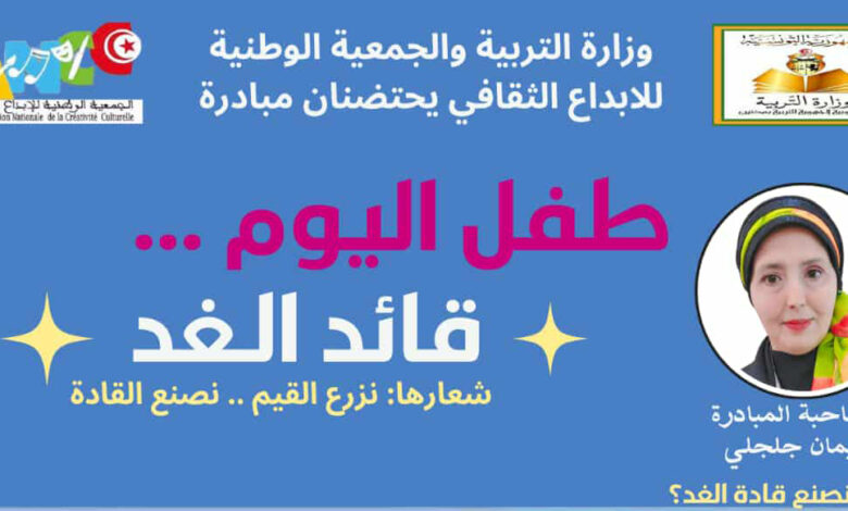 تتواصل مبادرة "طفل اليوم قائد الغد" التي تنظمها الجمعية الوطنية للإبداع الثقافي بالشراكة مع وزارة التربية، لتصل يوم الأحد 23 نوفمبر 2025 إلى مدرسة رواحة بجومين – بنزرت