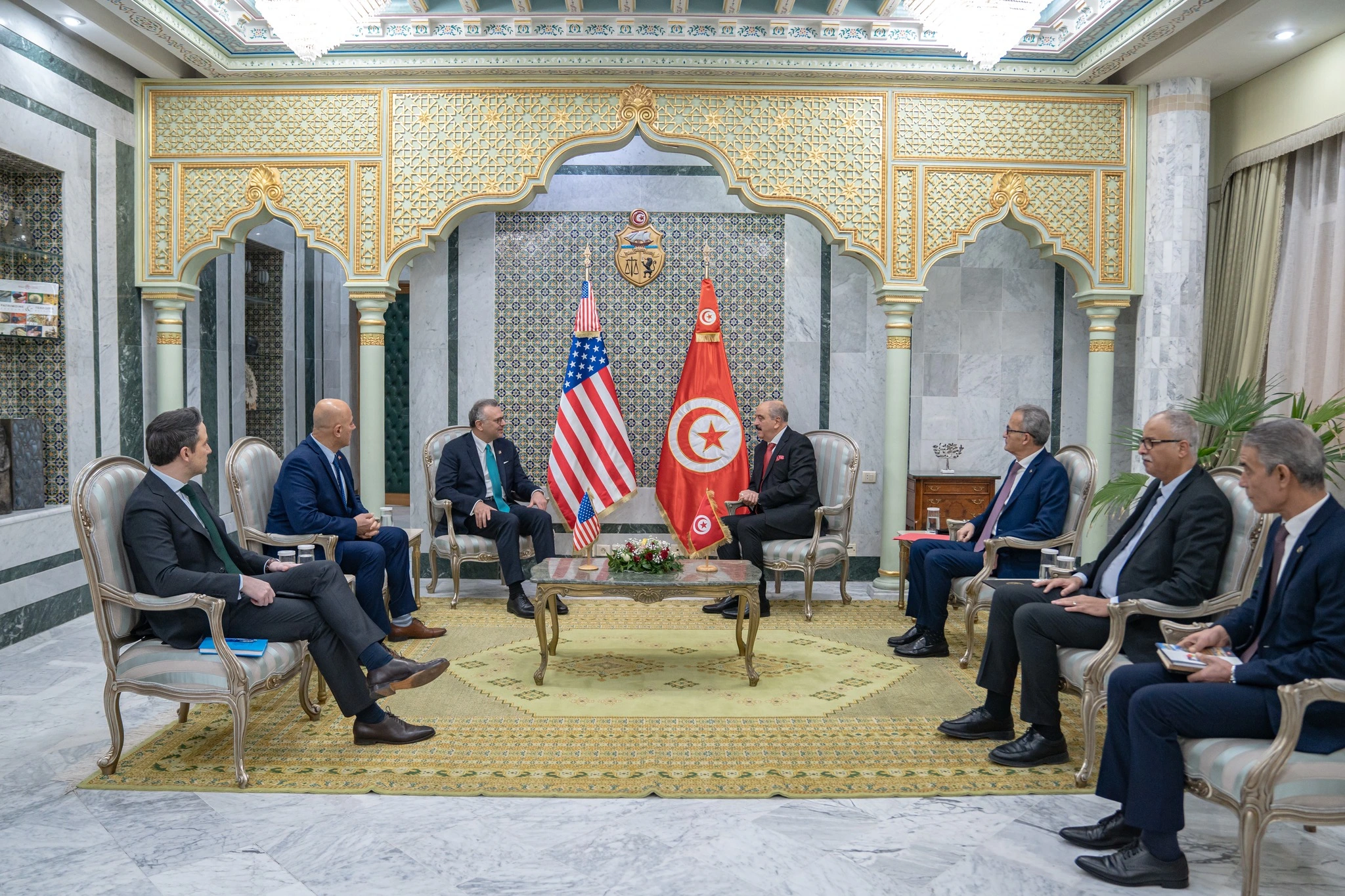 وبحث الوزير مع المستشار الأمريكي سبل الارتقاء بعلاقات التعاون في المجالات الاقتصادية والتجارية والأمنية والعسكرية والعلمية والتكنولوجية وكذلك في قطاعي السياحة والنقل، مؤكدا في هذا الصدد على أهمية دفع الاستثمارات الأمريكية في تونس والتوصل إلى اتفاق تجاري ثنائي يفضي إلى مراجعة التعريفات الديوانية المفروضة، بما يمكّن من استمرارية تدفق الصادرات التونسية الرئيسية إلى السوق الأمريكية، وعلى رأسها زيت الزيتون.