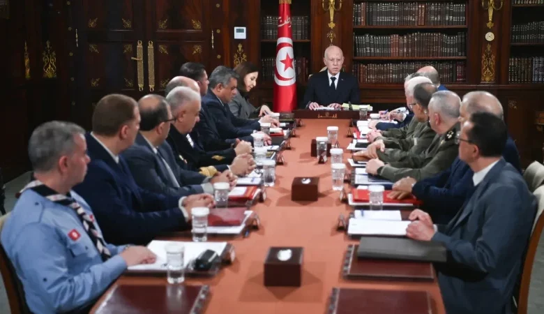 أشرف رئيس الجمهورية قيس سعيّد أمس الجمعة 23 جانفي 2026 على اجتماع ضمّ سارة الزعفراني الزنزري رئيسة الحكومة، وخالد السهيلي وزير الدفاع الوطني وخالد النوري وزير الداخلية وعصام الأحمر وزير الشؤون الاجتماعية وسفيان بالصادق كاتب الدولة للأمن الوطني وأعضاء المجلس الأعلى للجيوش، والمدير العام للأمن الوطني والمدير العام آمر الحرس الوطني والمدير العام للديوان الوطني للحماية المدنية، إلى جانب كلّ من أحمد حمام المدير العام للمعهد الوطني للرصد الجوي، ومحمد علي الخياري القائد العام للكشافة التونسية.