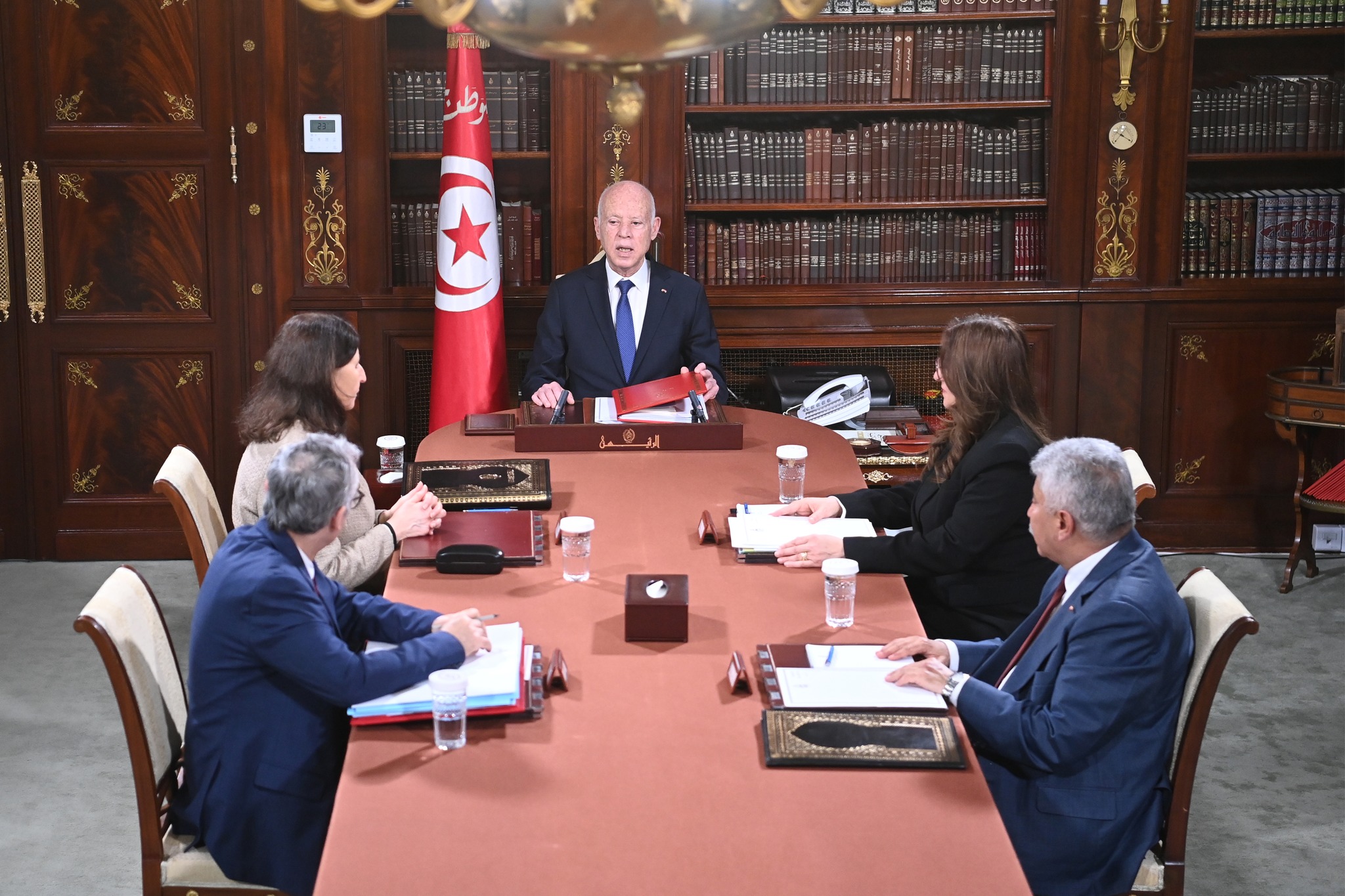 أشرف رئيس الجمهوريّة قيس سعيّد أمس، بقصر قرطاج، على اجتماع ضمّ كلاّ من رئيسة الحكومة سارة الزعفراني الزنزري، ووزيرة الماليّة مشكاة سلامة الخالدي، ووزير الشّؤون الاجتماعية عصام الأحمر، ووزير التّشغيل والتّكوين المهني رياض شوّد.