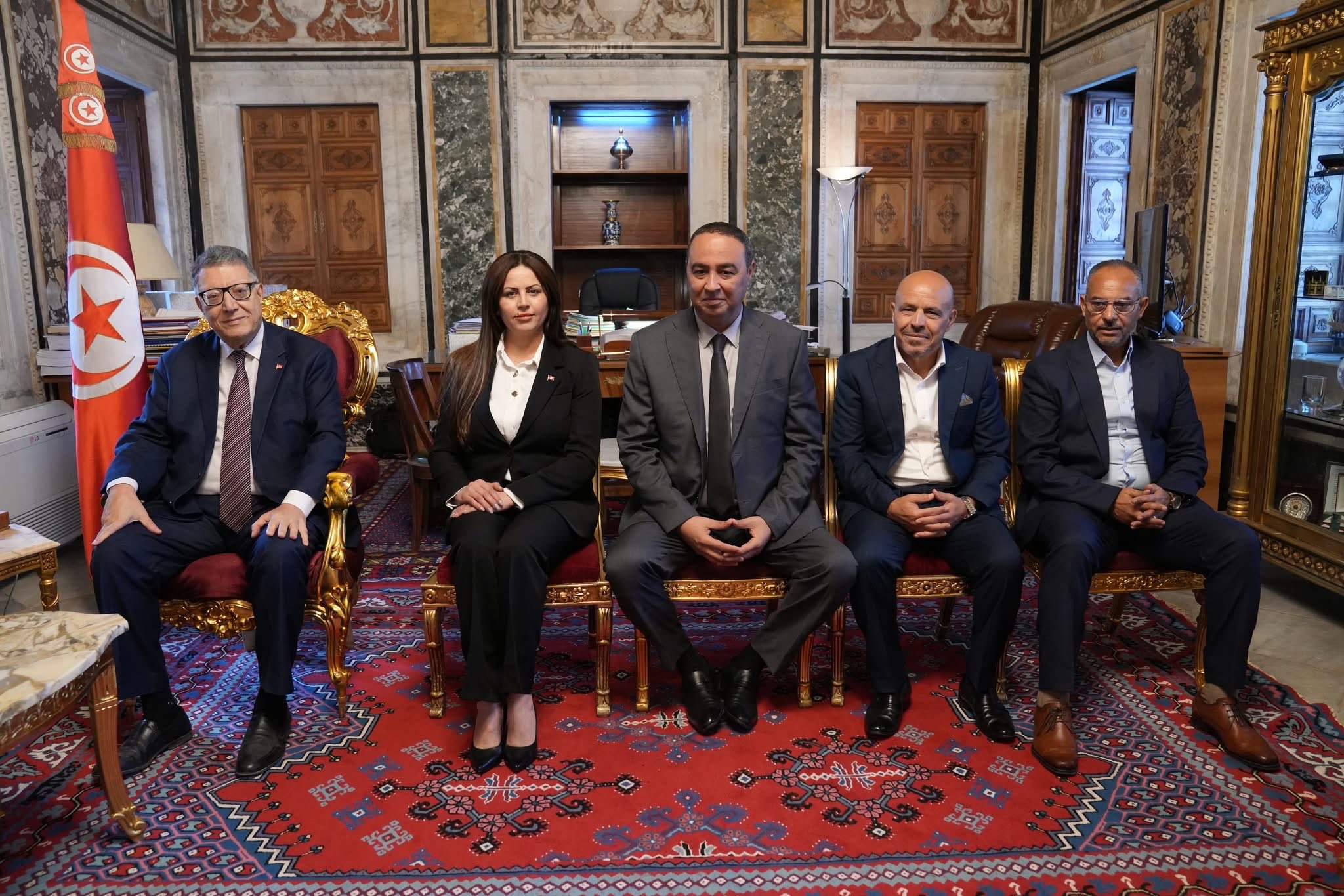 استقبل السيد ابراهيم بودربالة رئيس مجلس نواب الشعب صباح اليوم الاثنين 03 نوفمبر 2025 بقصر باردو، أعضاء المجلس الجهوي ببن عروس برئاسة السيد الشاذلي الشريف، والأعضاء السادة أحمد الحجري، وغيث المقطوف، وحمدي الغزلاني، و المعز الشواشي، ووجدي الحمراوي، وذلك بحضور أعضاء مجلس نواب الشعب السيدة ألفة المرواني النائب المساعد للرئيس المكلف بالعلاقات مع الوظيفة القضائية والهيئات الدستورية، والنائب عن دائرة بن عروس-المدينة الجديدة، والسادة فخري عبد الخالق النائب عن دائرة المحمدية، وكمال فراح النائب عن دائرة بومهل البساتين – الزهراء، ومراد الخزامي النائب عن دائرة فوشانة.
