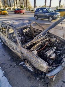 في حدود الساعة السابعة و نصف صباحا محرك سيارة صغيرة مما أدى الي اشتعالها بالكامل بجانب مفترق الشراع بمعتمدية بنزرت الشمالية هذا وقد تم التدخل من قبل وحدات الحماية المدنية ببنزرت الإطفاء الحريق و مصلحة شرطة المرور بإقليم الأمن الوطني ببنرت وتعود الأسباب الاولية لاندلاع الحريق بسبب التماس كهربائي