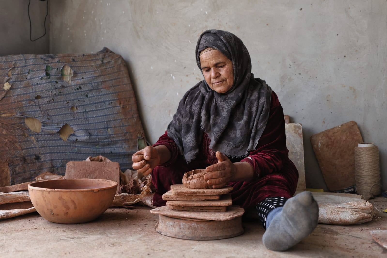 « العمل في الفخار يحتاج صبرًا طويلًا وتركيزًا. فبعد أن ننتهي من العجن والتشكيل، نترك القطع لتمر بمرحلة الطفون حتى تشتد وتصبح جاهزة للتجفيف. هذه المرحلة مهمّة جدًا لأنها تحدد جودة القطعة قبل دخولها إلى الفرن. نحن نتعلم هذه الخطوات منذ صغرنا، ونحاول الحفاظ عليها كما ورثناها عن أمهاتنا وجداتنا. »