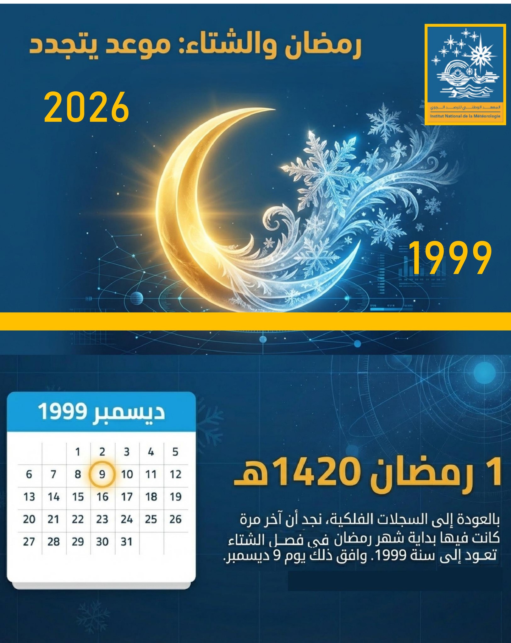 بالعودة إلى السجلات الفلكية، يتبيّن أنّ شهر رمضان المبارك لسنة 2026 ميلادي / 1447 هجري سيحلّ هذه السنة في فصل الشتاء من جديد، وذلك بعد غياب دام قرابة ستة وعشرين عاما.