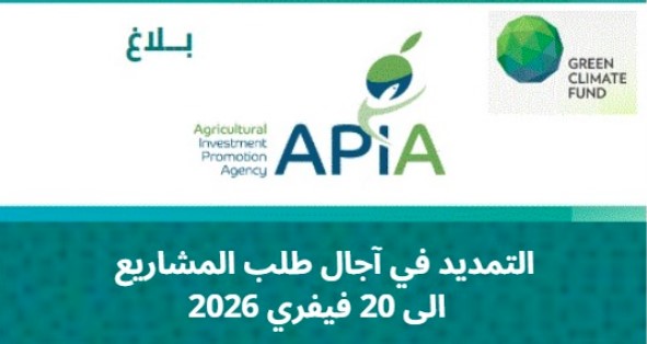 أعلنت وكالة النهوض بالاستثمارات الفلاحية، أمس الاثنين 9 فيفري 2026، عن التمديد في آجال طلب المشاريع الخاصة بالتغيرات المناخية إلى غاية يوم 20 فيفري 2026 على الساعة الواحدة ظهرًا.