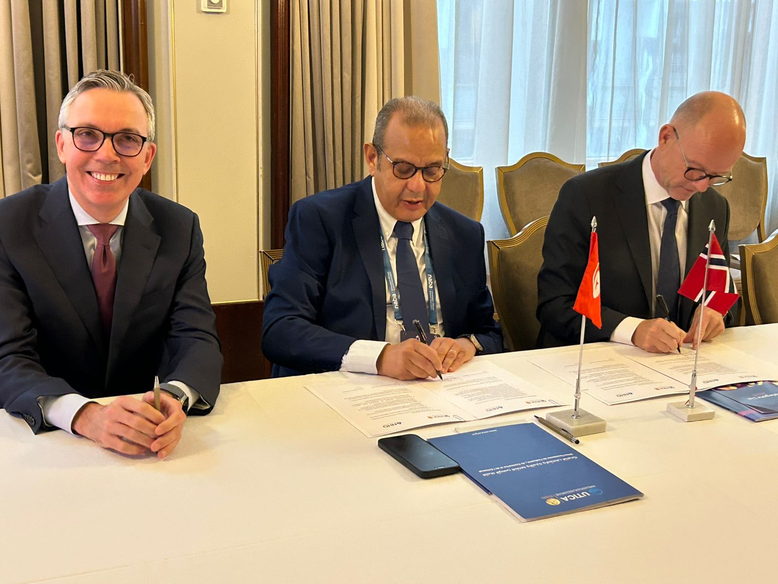 شارك وفد من الاتحاد التونسي للصناعة والتجارة والصناعات التقليدية، برئاسة سمير ماجول، في حفل توقيع مذكرة تفاهم لإنشاء مجلس الأعمال التونسي النرويجي بالعاصمة أوسلو، بحضور المدير العام للكنفدرالية النرويجية للمؤسسات أول أيريك إلميد.