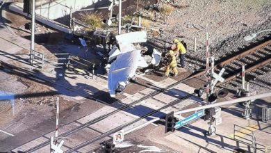 قطار يصطدم بطائرة اثر هبوطها اضطراريا فوق السكة