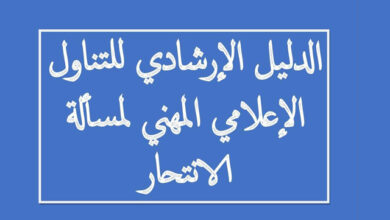 Actualités  وزارة الصحة تصدر دليلا إرشاديا حول التناول الإعلامي لمسألة الانتحارأصدرت وزارة الصحة دليلا إرشاديا للتناول الإعلامي المهني لمسألة الانتحار، حذرت فيه من اعتماد تفاصيل مثيرة حول حالات الانتحار مثل… Lire la suite »