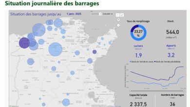 سجلت نسبة امتلاء السدود تحسنا طفيفا لتبلغ بتاريخ أمس غرة جانفي 2025، 23،27 بالمائة، وفق ما نشره اليوم الخميس 2…