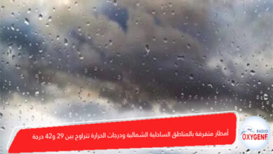 أمطار متفرقة بالمناطق الساحلية الشمالية ودرجات الحرارة تتراوح بين 29 و42 درجة
