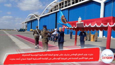 بنزرت: وزير الدفاع الوطني يشرف على توديع البعثة العسكرية التونسية المشاركة ضمن قوة الأمم المتحدة في افريقيا الوسطى من القاعدة العسكرية الجوية سيدي أحمد ببنزرت