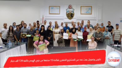 تكوين وتمويل بعث عدد من المشاريع الصغرى لفائدة 15 منتفعا من ذوي الهمم بكلفة 134 الف دينار