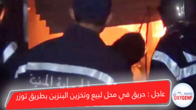 عاجل : حريق في محل لبيع وتخزين البنزين بطريق توزر