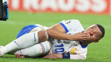 كيليان مبابي يتعرض لإصابة في الأنف خلال مباراة فرنسا ضد النمسا في يورو 2024