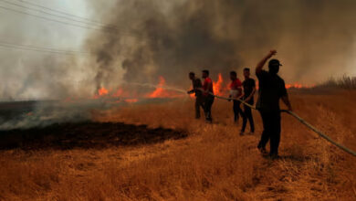ماطر: أربعة إصابات في حريق بأرض مزروعة بالقمح والشعير