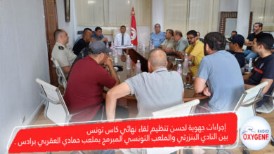 إجراءات جهوية لحسن تنظيم لقاء نهائي كاس تونس بين النادي البنزرتي والملعب التونسي المبرمج بملعب حمادي العقربي برادس