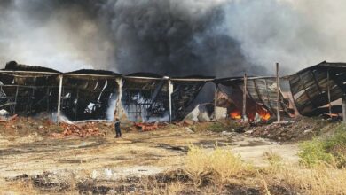 حريق سليمان: النيران تلتهم 5 آلاف متر مربع من مخازن تبريد