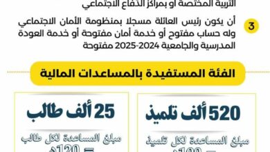 وزارة الشؤون الاجتماعية: مساعدات مالية وعينية لفائدة 520 ألف تلميذ و25 ألف طالب، بمناسبة العودة المدرسية والجامعية 2024 – 2025.