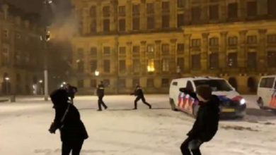 الهولنديون يستمتعون بالشتاء.. الشرطة والشعب إيد واحدة في كرات الثلج