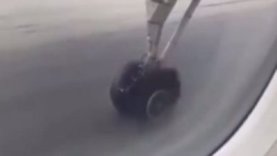 (سقوط إحدى عجلات طائرة أثناء إقلاعها (فيديو