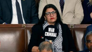 النائب الأمريكية رشيدة طليب ترفع لافتة ‘مجرم حرب’ في وجه نتنياهو