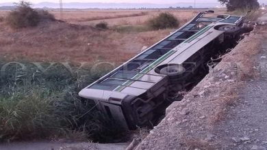 إنقلاب حافلة على مستوى الطريق الوطنية الرابطة بين منزل بورقيبة و تونس