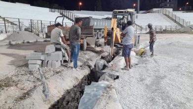 والي بنزرت يتفقد سير الاشغال الليلية لمشروع تعشيب الارضية الرئيسية لملعب 15اكتوبر