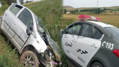 عاجل: حادث انقلاب سيارة خفيفة على الطريق الوطنية عدد 11
