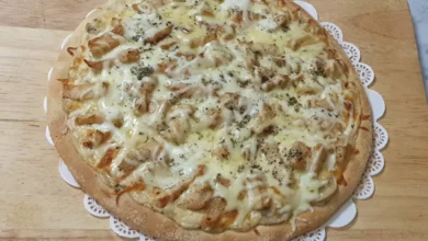 بيتزا صوص blanche والدجاج وشربة لسان عصفور بالجوانح من مزرعة القيصر ببنزرت🍗🧀🥚🍲