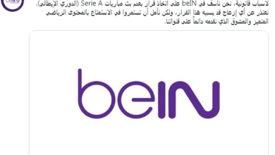 بي ان سبورت تعتذر لمشاهديها عن بث الدوري الايطالي لأسباب قانونية، نحن نأسف في beIN على اتخاذ قرار بعدم بث…