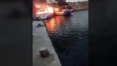 (كاب زبيب: احتراق اربعة مراكب ترفيهية كانت راسية بالميناء (فيديو
